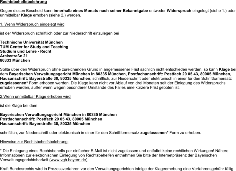 Beispiel des Rechtsbehelfs am Ende des Prüfungsbescheids #